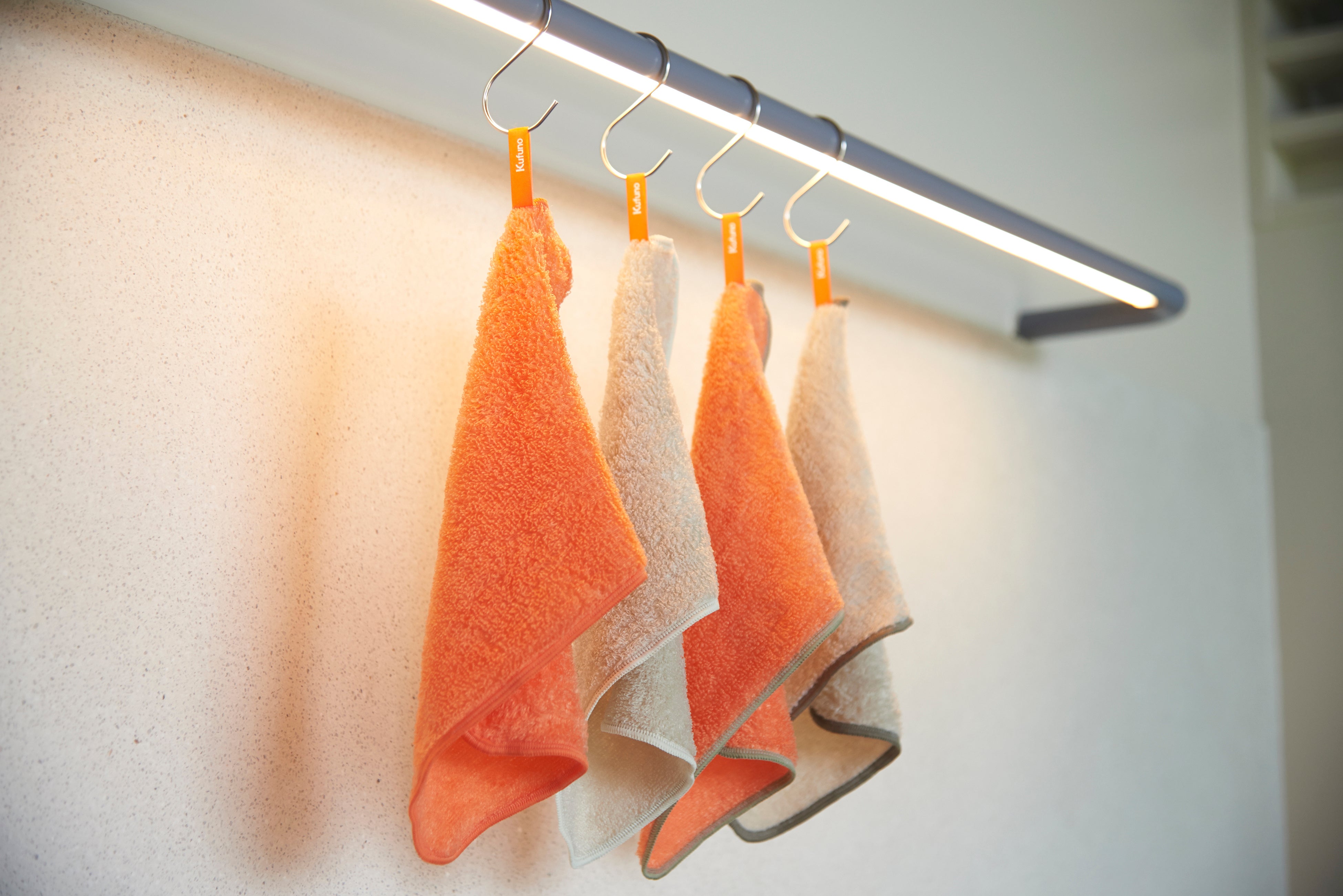 水筒や洗面台周りの掃除に最適な“mini”は、携帯もできるストラップ仕様。ほかにも『Kufuno』ブランドを象徴する「ブラシスポンジ」「オイルクリアクロス」から、春の新色が登場