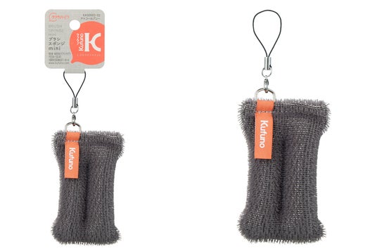 本製品はストラップ仕様となっており、かばんや携帯電話などに取り付けることができます。また簡単に取り外しができ、スポンジとしてもご利用いただけます。従来のブラシスポンジと同じ高品質素材を使用しており、性能はそのまま。水筒の淵や洗面台周りなど、ちょっとした清掃にも最適な小回りのきいたサイズです。