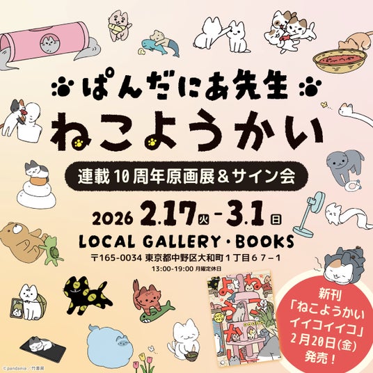 株式会社竹書房(所在地:東京都千代田区、代表取締役社長:宮田 純孝)は、2026年2月20日(金)発売の『ねこようかい イイコイイコ』(著者:pandania)の発売を記念して、2026年2月17日(火)より各種イベントを開催いたします。