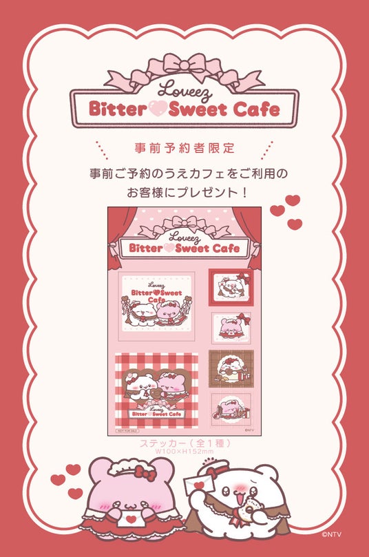 株式会社CLホールディングス(東京都港区、代表取締役社長:内川 淳一郎)の子会社である株式会社エルティーアール(東京都港区、代表取締役社長:谷 丈太朗)は、「らぶいーず Bitter(ハート)Sweet Cafe」を、2月13日(金)より東京・大阪・宮城にて、期間限定オープンいたします。