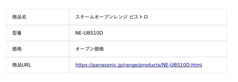 <商品情報>スチームオーブンレンジ ビストロ NE-UBS10D
