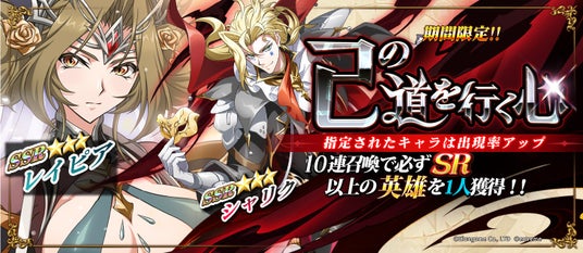 『己の道を行く心』は10連召喚で必ずSR以上の英雄を一人獲得できる、期間限定召喚です。SSRレイピアとシャリクの出現確率が期間限定でアップします。