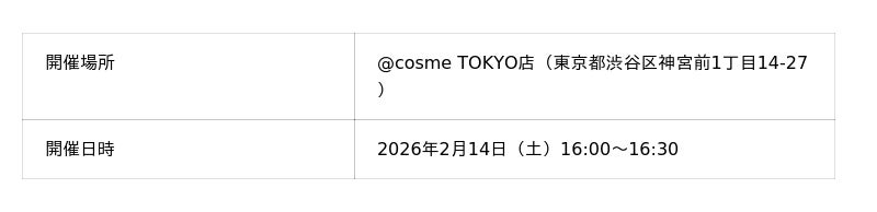 2月14日(土)11時~ /@cosme TOKYO店(東京都渋谷区神宮前1丁目14-27)