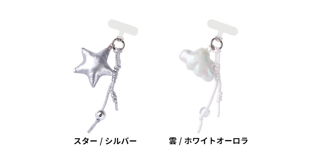 ・ホワイトオーロラカラーの雲モチーフと紐を組み合わせた、愛らしいデザイン