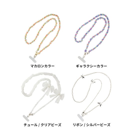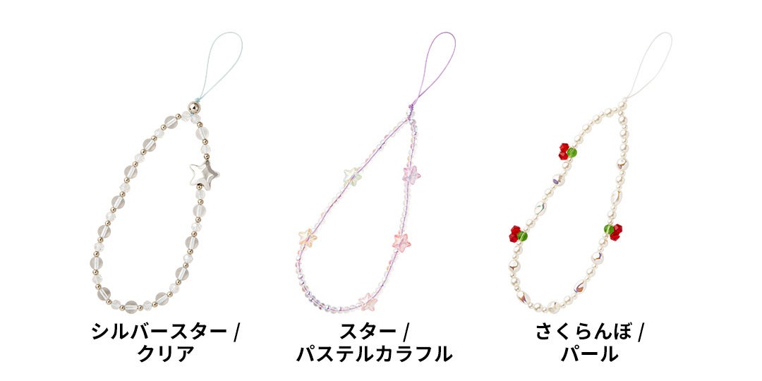 ラインアップは、アクリルチェーンハンドストラップ、クッションチャームストラップ、ビーズストラップ、ショルダーストラップの4種。スマートフォンへの装着はもちろん、ポーチやバッグのワンポイント、鍵の紛失防止など幅広いシーンで活躍し、手に取る瞬間から身に着ける毎日まで、気分が弾む”ときめく時間”をお届けします。