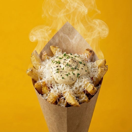 本場ベルギーの伝統に則り、温度の異なる油で二度揚げる工程を採用。厚切りにカットされたポテトの表面は驚くほどクリスピーに、中は蒸したてのようにホクホクとした食感に仕上げます。