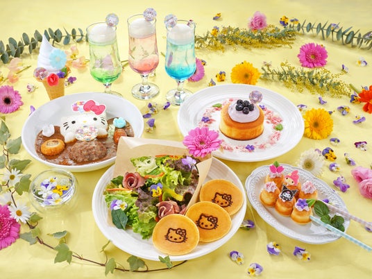 『Harmonyland Flower Fantasy』の開催期間中は、見た目も華やかな期間限定フードが登場します。お花をイメージした「キティのフラワーカレー」や、花束に見立てた「ローストビーフのブーケサラダ」など、春気分を盛り上げるメニューがラインアップ。さらに、花びらのようなチョコをトッピングした「フラワーベリーパンケーキ」や、食べ歩きにもぴったりな「フラワープチホットケーキ」、カラフルな「ゼリークリームソーダ」など、写真映えするメニューもお楽しみいただけます。