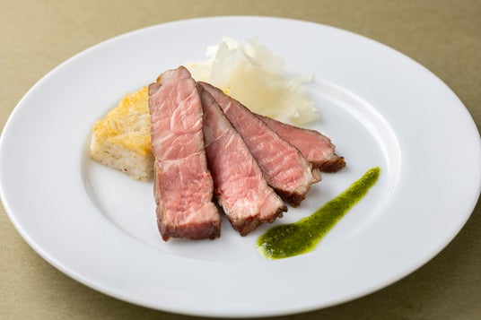 【ディナー限定】焼き押し麦リゾットと牛ステーキ サルサベルデ ふわふわチーズ飾り