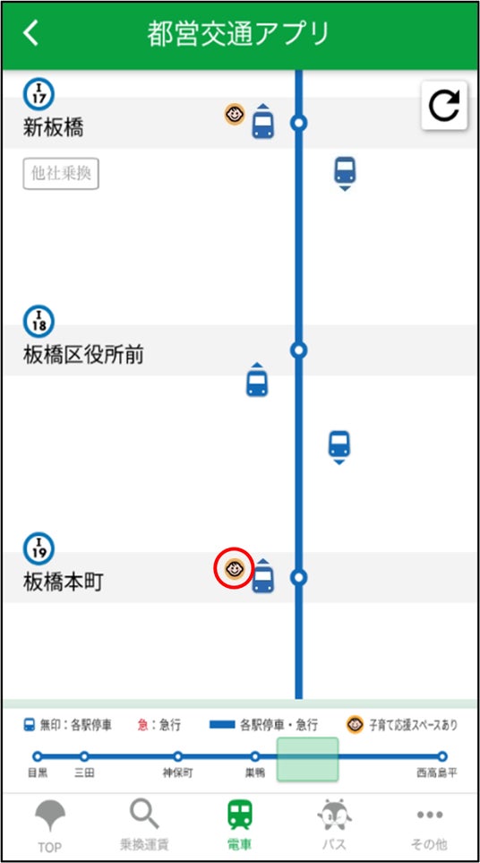 「子育て応援スペース」の運行情報は、乗車当日に東京都交通局ホームページまたは都営交通アプリからご確認いただけます。