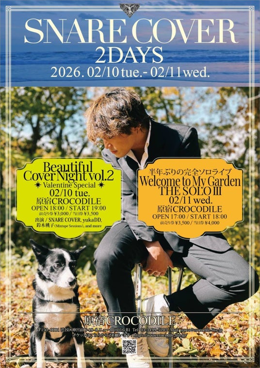 予約は スネアカバー2DAYS 原宿クロコダイル または MAIL croco@crocodile-live.jp/TEL 03-3499-5205