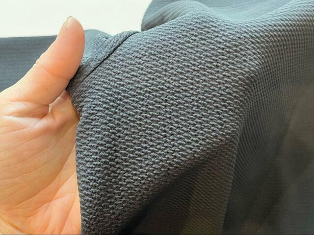 エンボス加工による生地の凹凸が上品な印象を演出しつつも、伸縮性があって楽ちんなんです♪