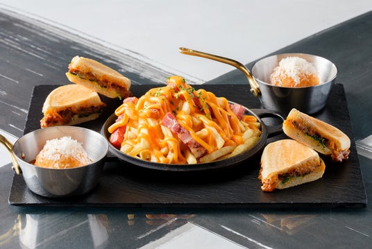 ニュージーランド産チェダーチーズソースと能登ポークベーコンのローディットポテト