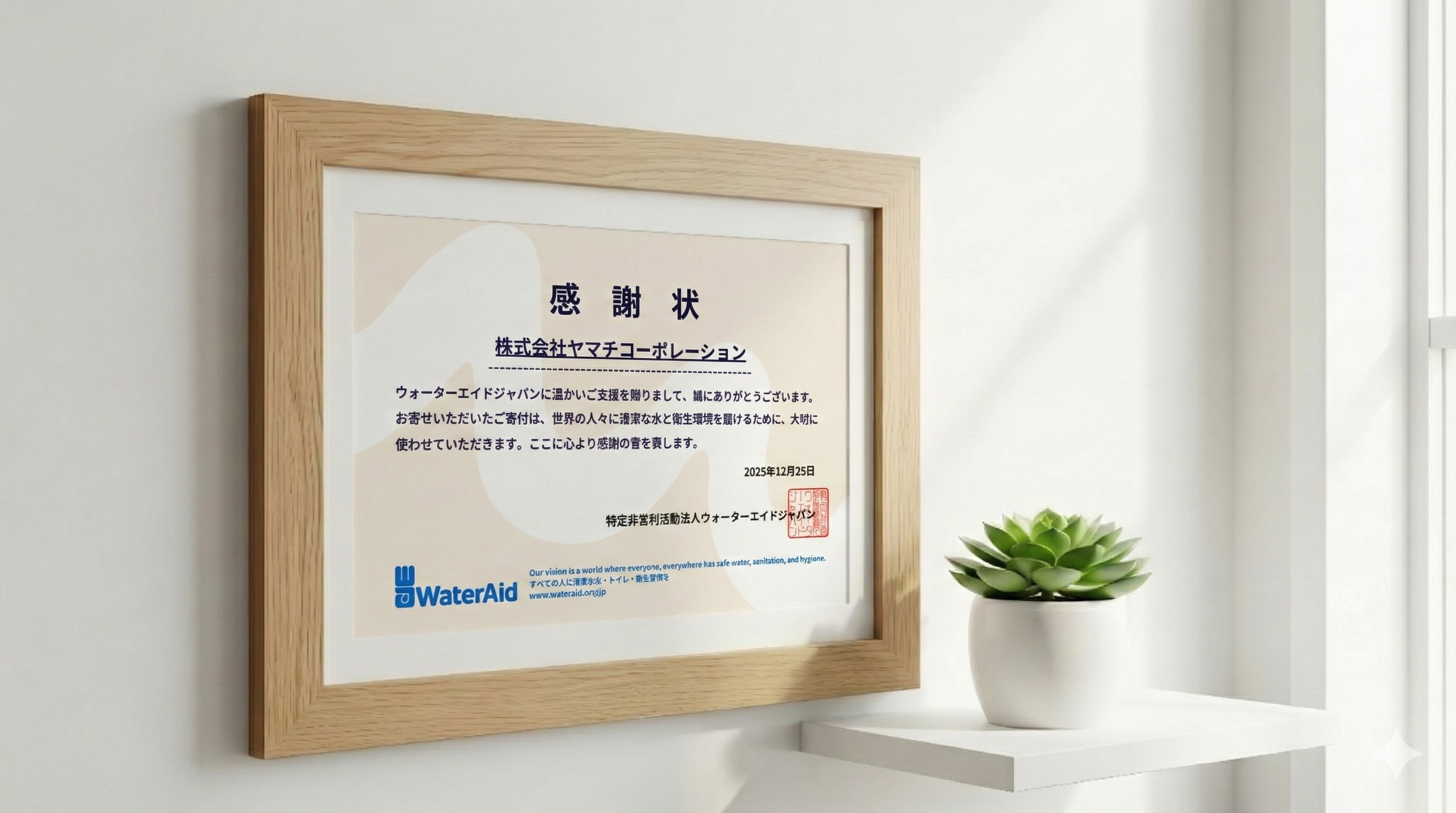株式会社ヤマチコーポレーション(本社:北海道札幌市|代表取締役山地章夫)が展開する建築資材ブランド「MYKE(マイク)」は、地球の水資源を守り増やす取り組みの一環として、特定非営利活動法人ウォーターエイドジャパンへ2025年度の寄付(10万円)を行ったことをお知らせいたします。また、本活動に対し、同団体より感謝状をいただきました。