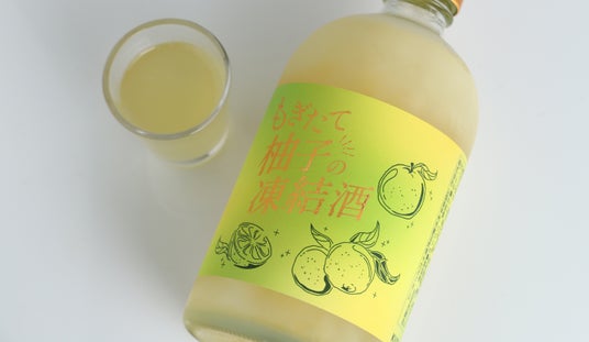 「もぎたて柚子の凍結酒」は、畑に行かないと味わえないような「もぎたての柚子」を「生」のまま味わえるお酒です。生の柚子の最大限にフレッシュな瞬間をお届けするために、もぎたての柚子を最短でお酒にし、フレッシュなままを瓶詰め後に冷凍保管します。お客さまが飲む時に合わせて解凍することで、「もぎたての柚子」の味わいと香りを自宅で再現することに成功しました。