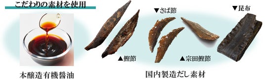 ●国内製造鰹節、さば節、宗田鰹節、北海道産昆布の合わせだしを使用