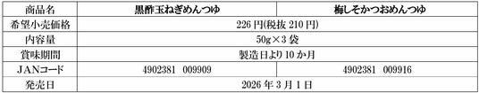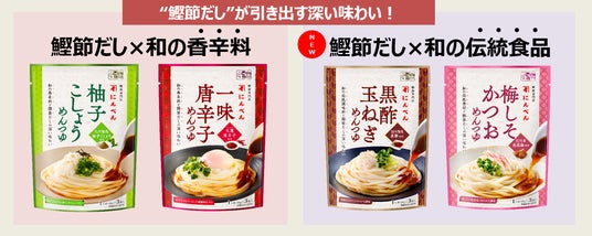 株式会社にんべん(東京都中央区、代表取締役社長 高津伊兵衛)は、涼味向け個食用めんつゆ「黒酢玉ねぎめんつゆ」「梅しそかつおめんつゆ」を2026年3月1日(日)より新発売いたします。本品は、2025年3月に発売した「柚子こしょうめんつゆ」「一味唐辛子めんつゆ」に次ぐ新フレーバーです。近年の長引く夏の暑さを背景に、夏に人気の“酸味のあるさっぱりとした味わい”に着目しました。鰹節だしと相性の良い国内製造黒酢と紀州産南高梅をそれぞれ合わせることで、さっぱりとしながらも奥行きのある、本格的な和の味わいに仕上げました。個食パッケージなので使い切りやすく、1人前から気軽にお愉しみいただけます。
