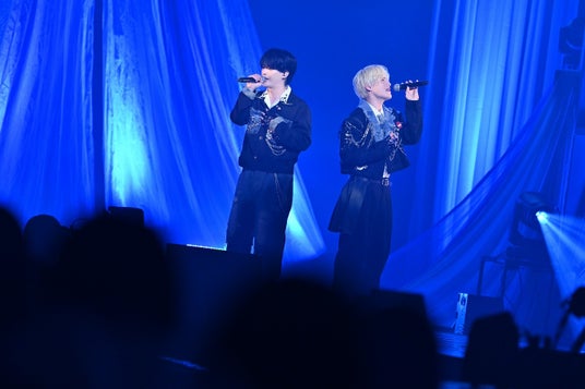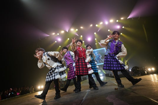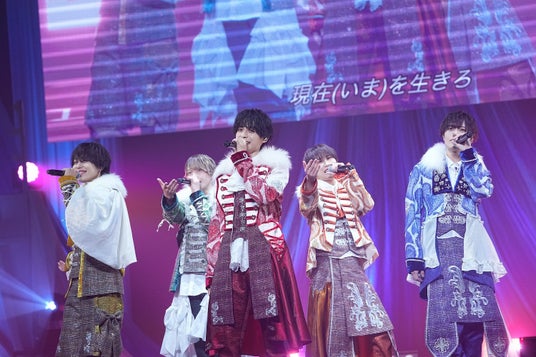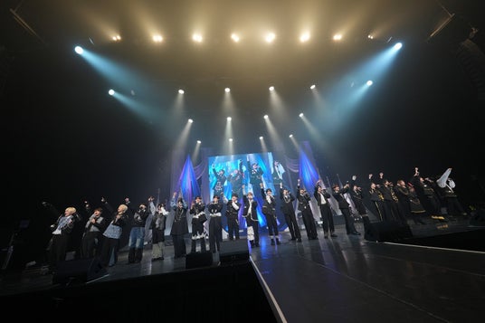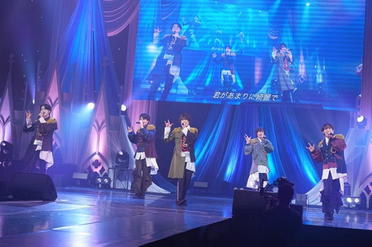 後半では、グループの垣根を超えたシャッフルステージを披露。『フェステバルーンハート』では、黒澤、矢野、西山、白金、西野、冨田がクラップをして盛り上がり、『OAO』では、火ノ宮、北川、金子、一ノ瀬、高崎が妖艶なダンスで新たな魅力を開花。そして『誰にも渡しません!』では客席に置かれたボックスからかわいい耳がついた帽子をかぶった椚、木瀬、天野の3人が登場。サイン入りの骨のぬいぐるみを投げ、『僕はいつだってアイドルだ』では、和泉、宇佐美、双葉、大福、梅本が美しく歌い上げたかと思えばビートチェンジで豊かな表現力を披露した。そして、人気のコンビ、“きょやりく”こと水原と日之出が『冬空』と『Jasmine』をマッシュアップした楽曲をアカペラからスタートさせ、ドラマティックに歌い、ORANGE RANGEの『イケナイ太陽』と、M!LKの『好きすぎて滅!』のカバーをパフォーマンス。ふたりは見つめ合って楽しそうに歌うと、最後に全員が登場し、最高の盛り上がりを見せた。