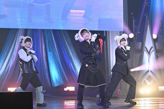 これまでとの楽曲とは異なる姿で驚かせた『デザートレクイエム』では、力強い歌声とセリフで極限の愛を伝え、金子が初めてセンターを務める、本日初披露の楽曲『したぺろシュクレ』へ。ふわふわでかわいらしい彼にピッタリの楽曲に胸を撃ち抜かれていると、初披露にもかかわらず「“蒼央ちゃん、落ちサビ頑張って!”と言ってください!」と声がかけられ、瞬間で会場からリズムに合わせ“蒼央ちゃん、落ちサビ頑張って!”と声が上がり、見事にCメロを歌い上げていく。ファンの対応力の凄さを感じられる瞬間だった。『萌え袖マフラー』では、北川が「寒い中、来てくれてありがとう! ずっと一緒!」とウインクし、最後は大福が「大切な人を思い浮かべながら聴いてほしいです」と話し、デビュー曲『Etoneige』を披露。前振り通り、ファンとの関係を歌っているような大切な曲をしっかりと届けた。