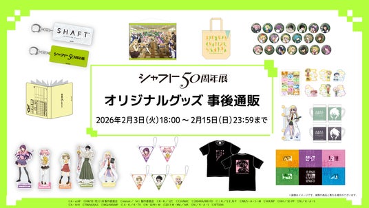シャフト50周年展の会場で販売したオリジナルグッズの事後通販の実施が決定!本日2月3日(火)18:00よりアニプレックスオンラインにて販売開始となります。