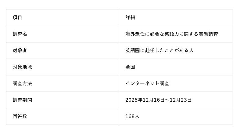 株式会社 学研ホールディングス(東京・品川/代表取締役社長:宮原博昭)のグループ会社で、実践的な英会話学習ができるAI英会話アプリ「Talkful」を運営する株式会社 ベンド(東京・千代田/CEO:近藤潔)は、同社が運営する「スキルアップ研究所」にて、「海外赴任に必要な英語力に関する実態調査」を行い、2026年1月30日に結果を発表いたしました。