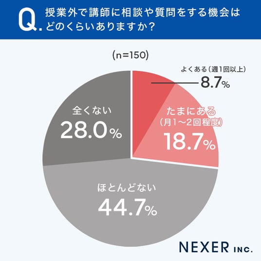 次に、授業外で講師に相談や質問をする機会はどのくらいあるのかを聞いてみました。