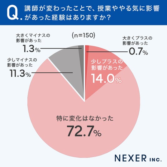 続いて、講師が変わったことで、授業ややる気に影響があった経験があるかを聞いてみました。