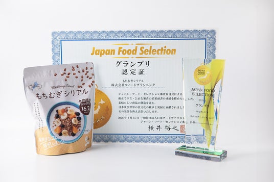 このたび、株式会社ウィードプランニング(滋賀県大津市)が製造・販売する「もちむぎシリアル」が、食の専門家による食品評価制度「ジャパン・フード・セレクション(以下、JFS)」で最高賞となるグランプリを受賞いたしました。
