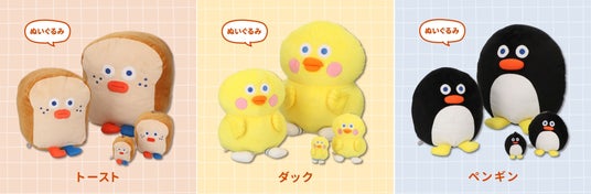 【先行販売】ぬいぐるみ トースト・ダック・ペンギン(各L/M/S/XSの4サイズ) XSサイズ 1,320円、Sサイズ 1,980円、Mサイズ 3,190円、Lサイズ 4,290円人気のトーストをはじめ、3キャラクターをぬいぐるみに。SサイズとXSサイズはボールチェーン付きでバッグやポーチに付けて持ち歩ける仕様になっています。