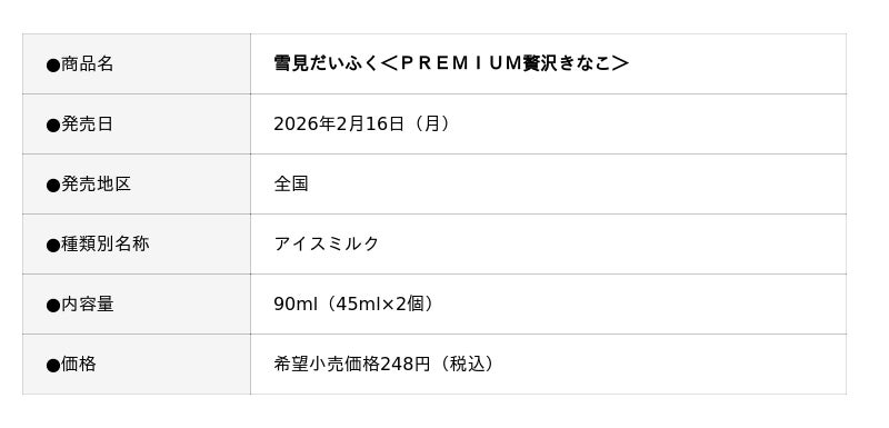 株式会社ロッテ(東京都新宿区、代表取締役社長執行役員:中島英樹) は、「雪見だいふく」ブランドから、きなこづくしの『雪見だいふくPREMIUM贅沢きなこ』を2月16日(月)より全国で新発売いたします。「雪見だいふくPREMIUM」は24年2月に贅沢な味わいでゆったりとした時間を過ごしていただきたい想いで誕生した雪見だいふくのプレミアムシリーズです。今回の新作は、この時期人気のきなこをふんだんに使用した贅沢な仕立てで、きなこ好きにはたまらない一品です。コクのある深煎りきなこソース、きなこアイスを香り高いきなこ味のおもちで包んだきなこづくしのプレミアムな雪見だいふく。まだまだ寒さが厳しい時期に、こたつの中できなことおもちの相性の良さを楽しみながら優雅なひと時をお過ごしください。
