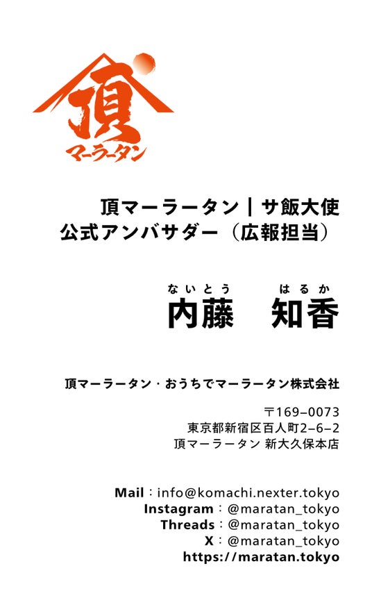 新宿名物 元祖和製「頂マーラータン」公式アンバサダー|サ飯大使として、マーラータンの魅力を全国にお届けいたします。