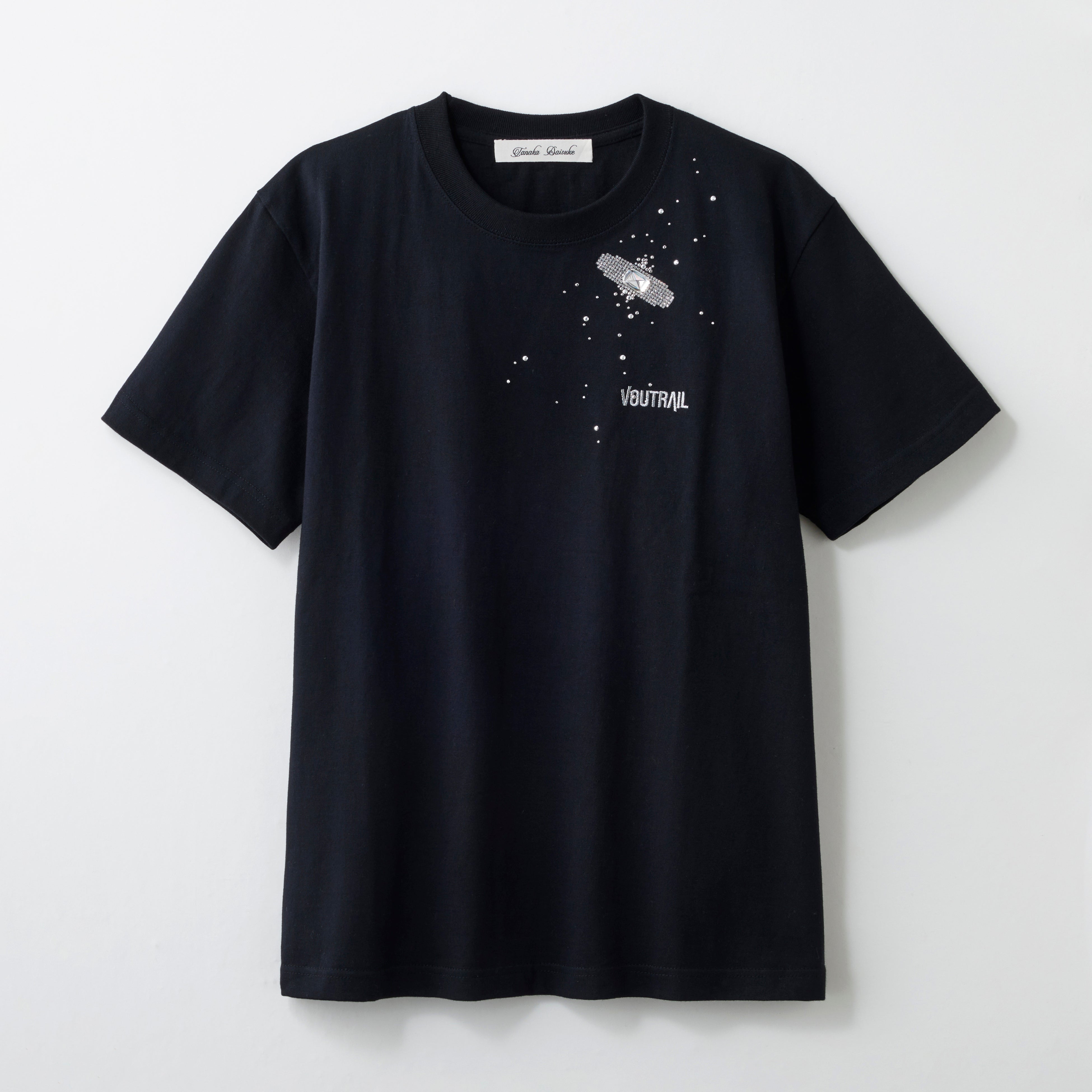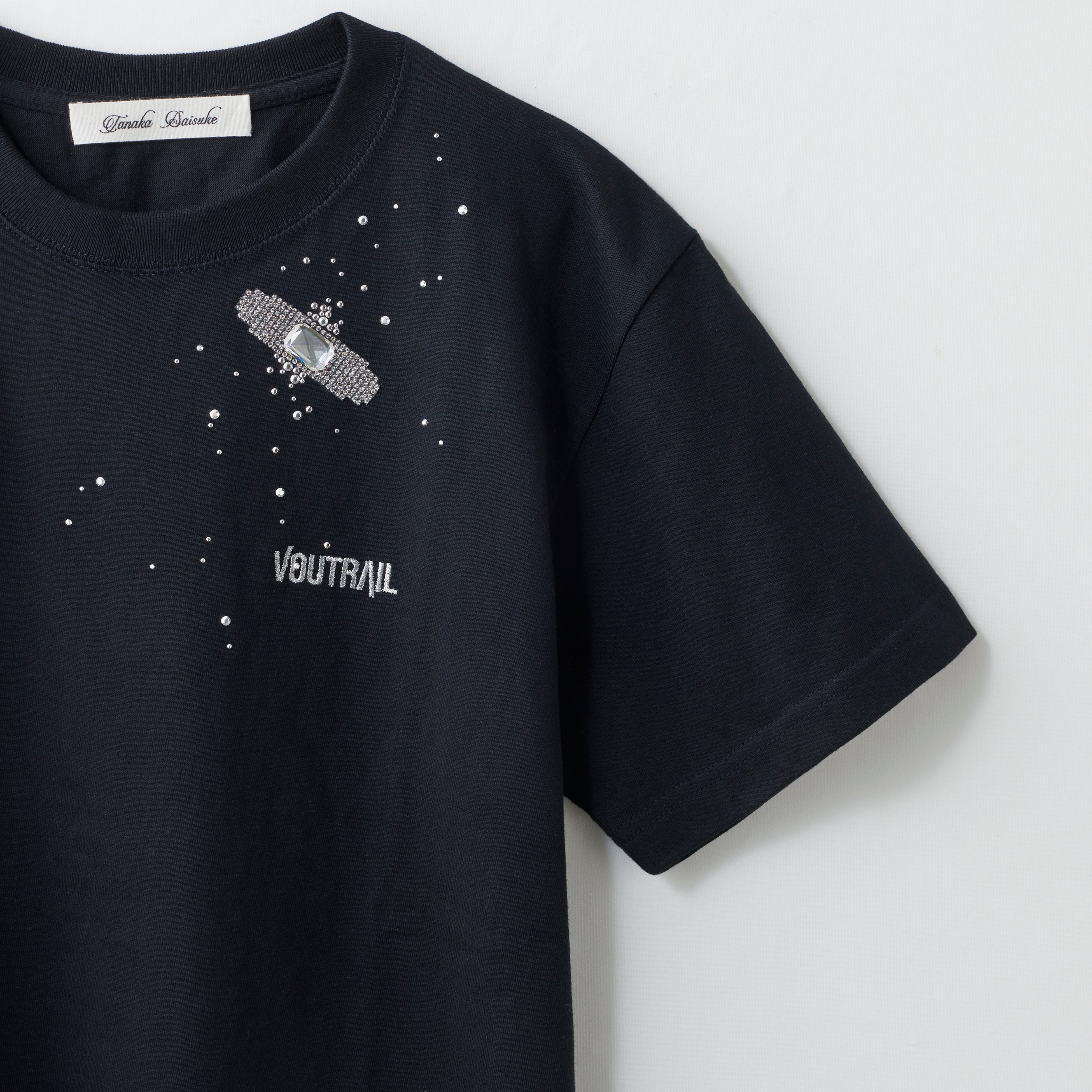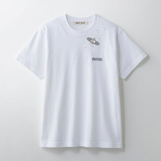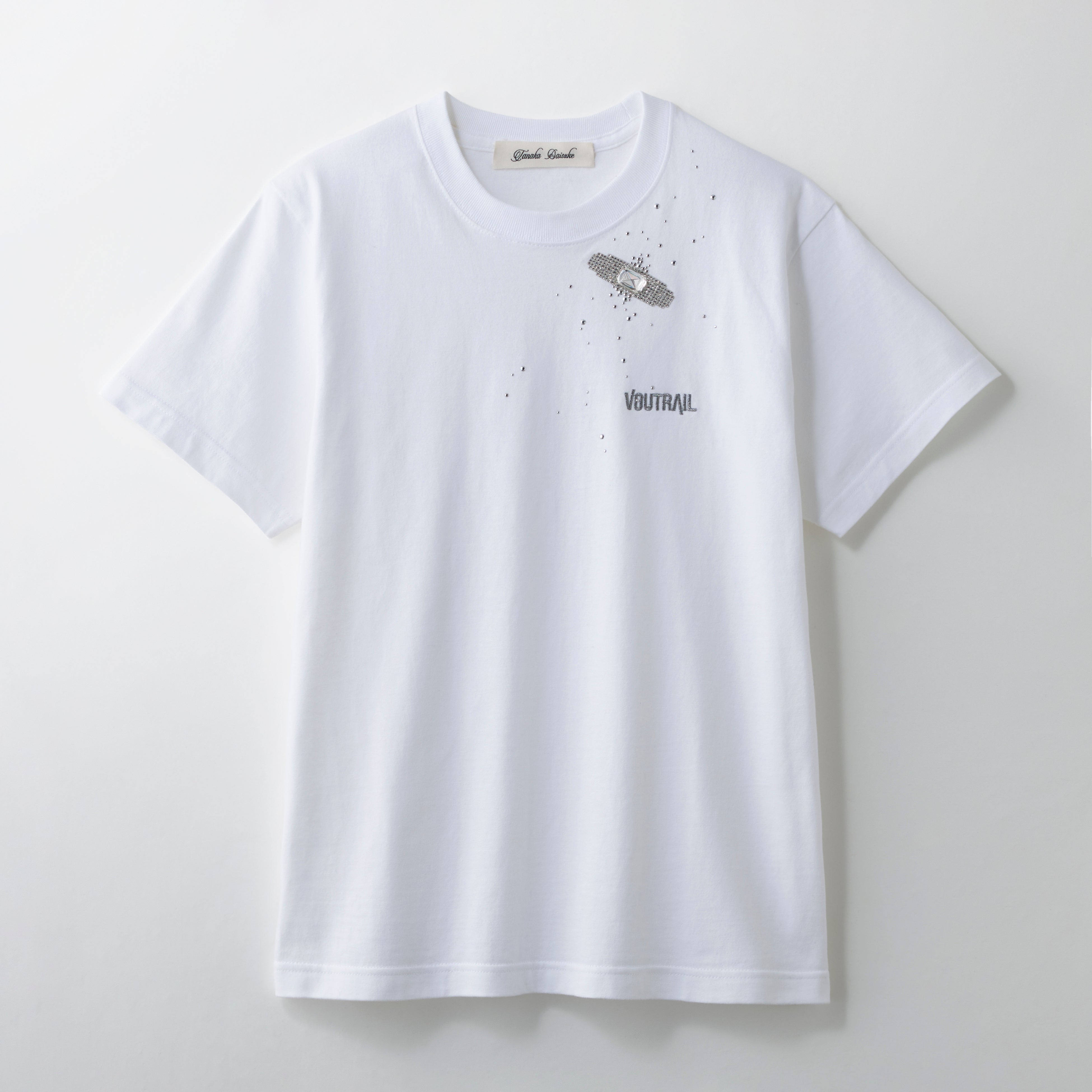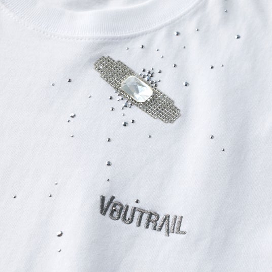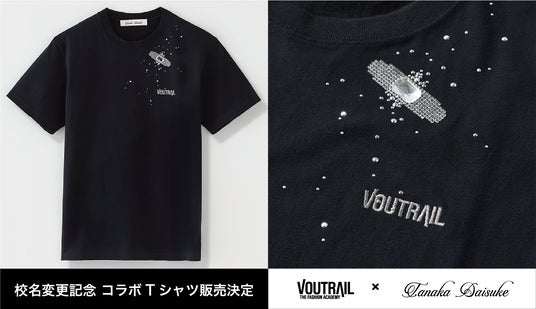 本コラボレーションTシャツは、tanakadaisukeの代名詞ともいえるビジューや刺繍の表現を通して、「VOGUE(ファッション・流行)」と「TRAILBLAZER(開拓者・先駆者)」を掛け合わせた新たな学校名〈VOUTRAIL〉に込めた世界観を可視化した、特別な一着です。