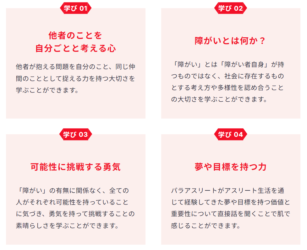 また2024年4月には運動会にインクルーシブな種目を導入して、先生や児童生徒たちがインクルーシブな考え方やその大切さを知ってもらうことを通じ、インクルーシブ教育推進の機会を提供する新プログラム「パラサポ!インクルーシブ運動会」をスタートしました。