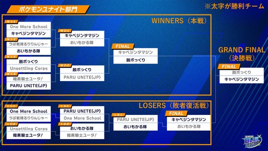 本戦FINALで一度「脱ボっくり」に敗北した「キャベジンタマジン」でしたが、敗者復活戦後のGRAND FINALでは戦術を見事に修正し優勝を勝ち取りました。本戦FINALでストレート負けを喫した相手に対して劇的な逆転勝利を収め、同部門優勝の栄冠を手にしました。