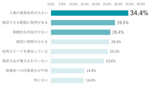 採用判断の裏付け不足、最多理由は「人事の業務負担が大きい(34.4%)」