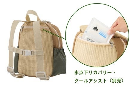 軽量で耐久性に優れたポリエステル生地を使用し、快適な背負い心地を実現。背面ポケットに保冷剤を入れることで、暑い日でも背中をひんやり冷やし、暑さ対策が可能。また、断熱材を使用したソフトクーラー仕様のため、保冷剤を一緒に入れると、クーラーバッグとしてお弁当などの持ち運びにも活躍。保冷剤は、肌に直接触れて使用できる「氷点下リカバリー・クールアシスト」(別売品)がおすすめ。