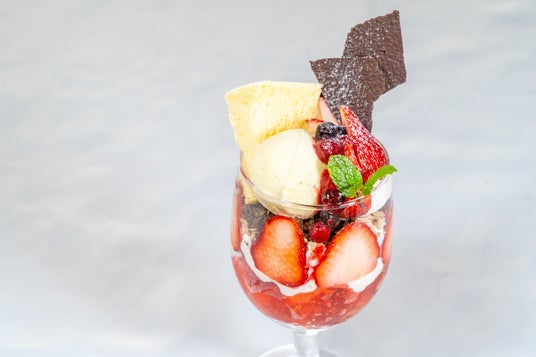 旬の苺ならではの甘酸っぱさと、軽やかな口当たりが楽しめるパフェは、食後のデザートやカフェタイムにおすすめ。