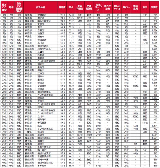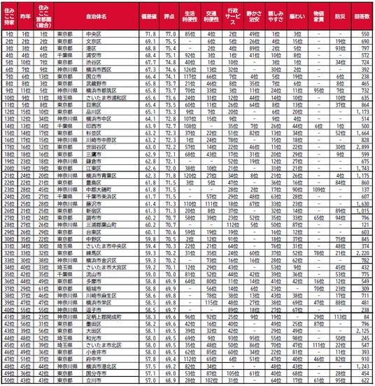 借りて住んだ街(自治体)の住みここちランキング2025<首都圏版>1~50位