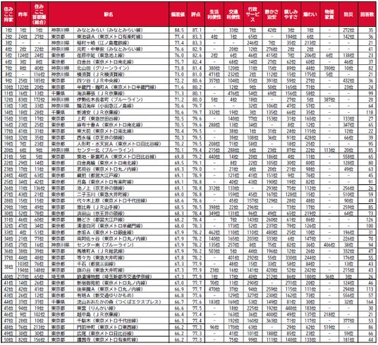 借りて住んだ街(駅)の住みここちランキング2025<首都圏版>1~50位