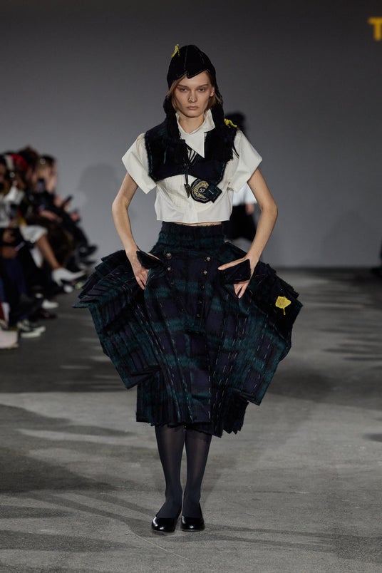 本コレクションは、日本の学校制服を起点に、規律と個人、秩序と自由の関係性を再考する試みである。制服は本来、集団に調和をもたらす衣服である一方で、身体や感情を規定する装置として機能してきた。本作では、その構造を物理的・象徴的に脱構築することで、抑圧と解放が共存する1つの「世界(WORLD)」を提示する