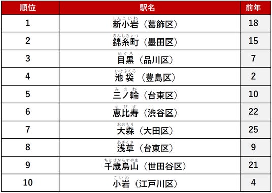 2位に「新小岩」駅、3位に「葛西」駅がランクインしました。