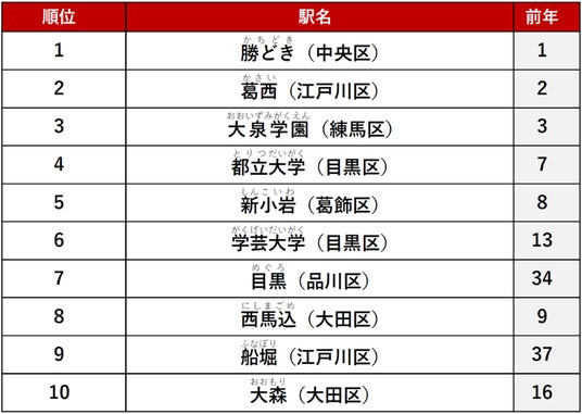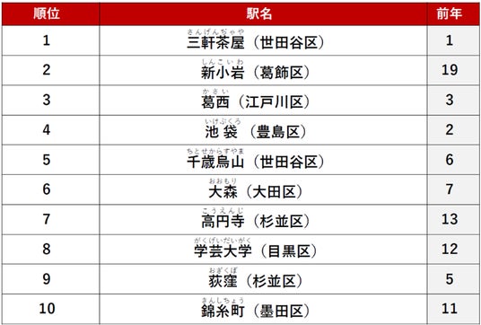 2位は「葛西」駅、3位は「大泉学園」駅がランクインしました。