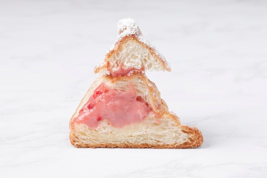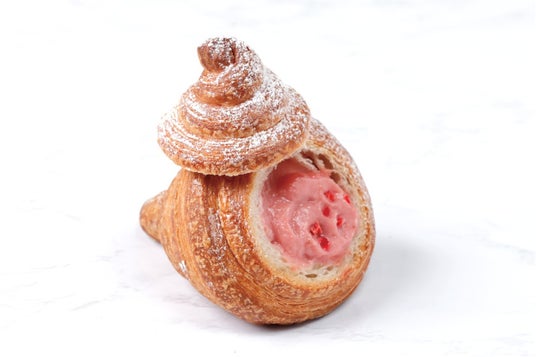 あまおう苺のストロベリーコルネ(テイクアウト497円/イートイン506円):発酵バターを贅沢に使用したサクサクのクロワッサン生地に、特製の苺クリームを絞り込んだ一品です