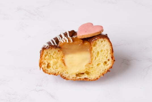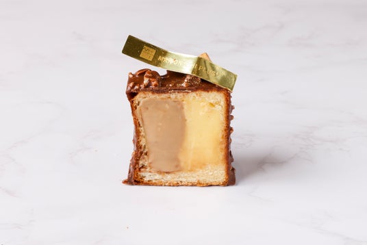 ブリオッシュ生地をリング状に焼き、カスタードクリームと生キャラメルクリームを中に閉じ込めました。
