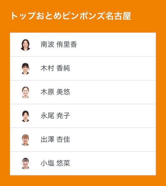 ノジマTリーグ 2025-2026シーズン 公式戦 2月7日(土)開催 京都カグヤライズ vs トップおとめピンポンズ名古屋のベンチ入り選手を発表いたします。