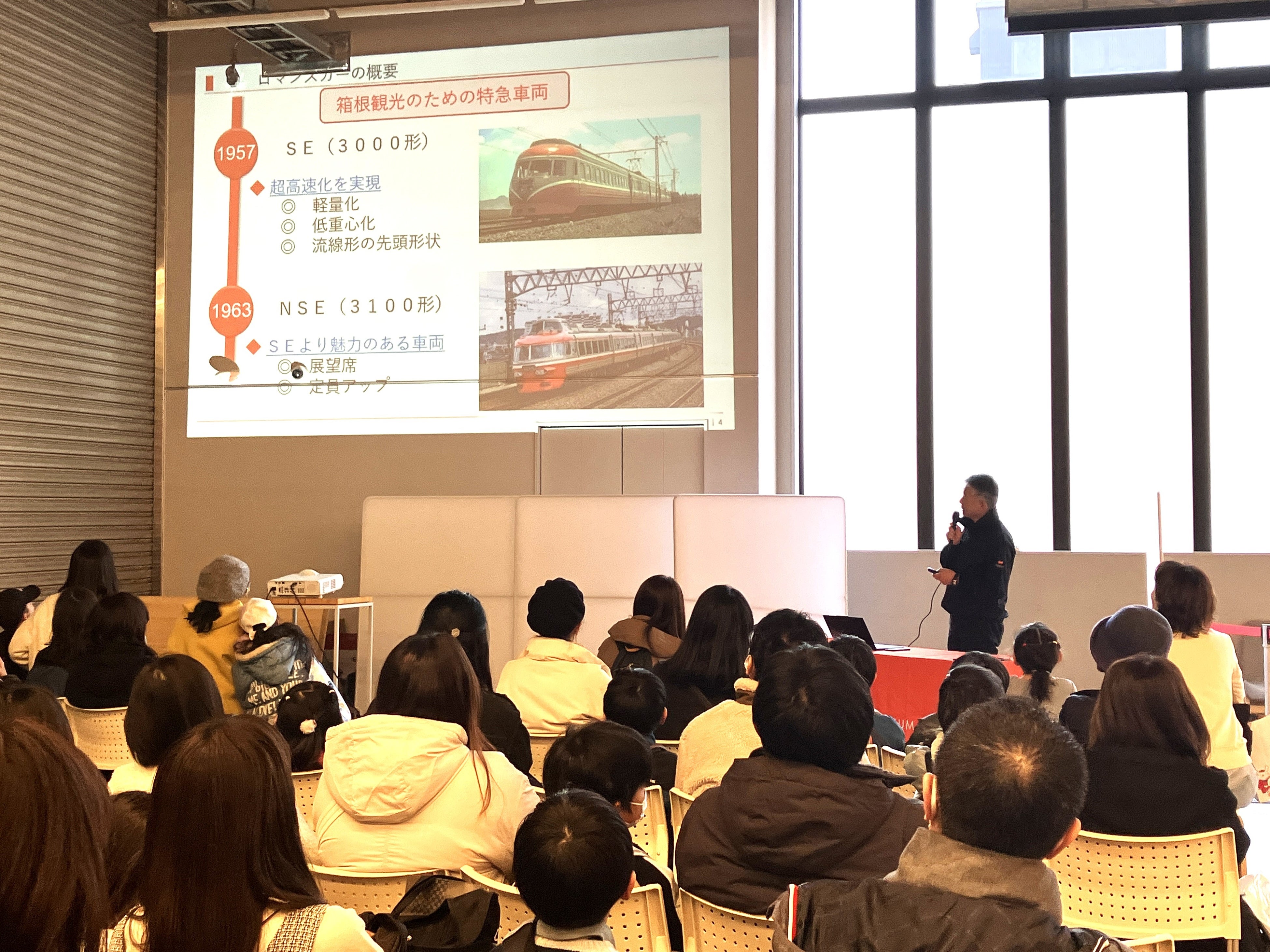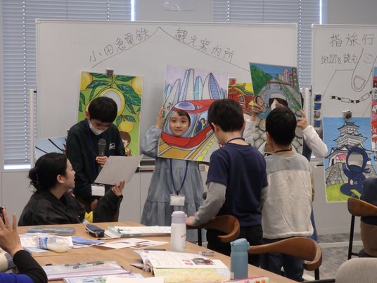当日は、小学3~6年生の児童28名が参加し、3つの講座の受講とロマンスカーミュージアムの見学を行いました。参加した子どもたちからは「小田急沿線の観光スポットについて知ることができ勉強になった」、「顔ハメボードでの発表が楽しかった」といった感想があり、子どもたちの様子を見学していた保護者からも今回の講座について高い評価をいただきました。