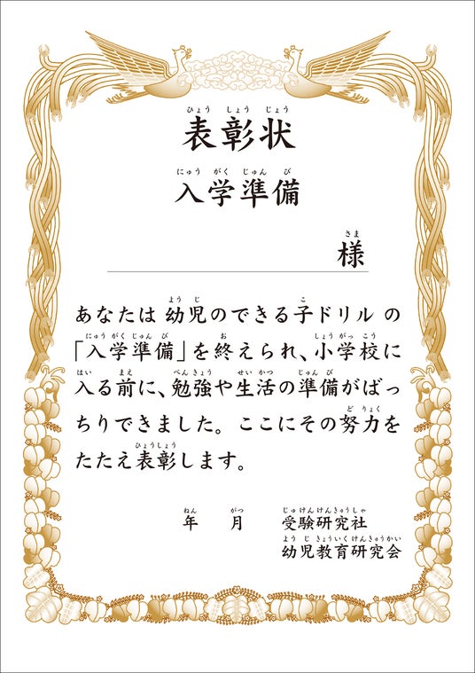 お子様にとって学習のはげみになり、楽しく使える「できたよシール」や、巻末には「表彰状」がついており、達成感もアップ。お子様のがんばりを応援します。