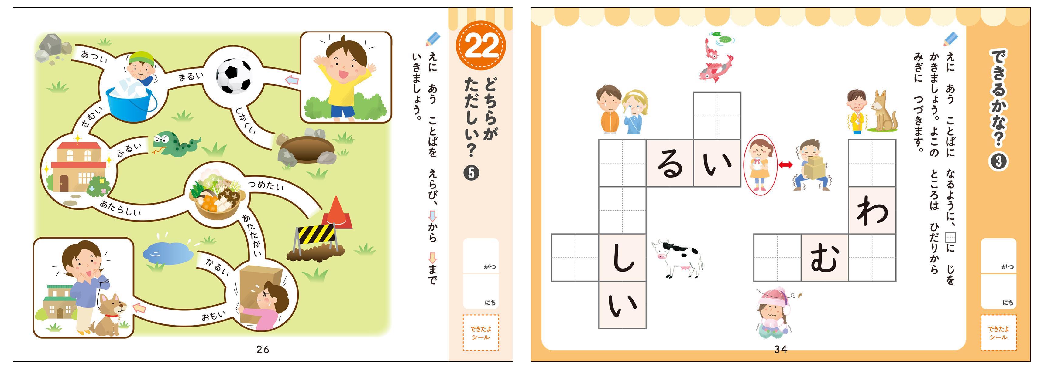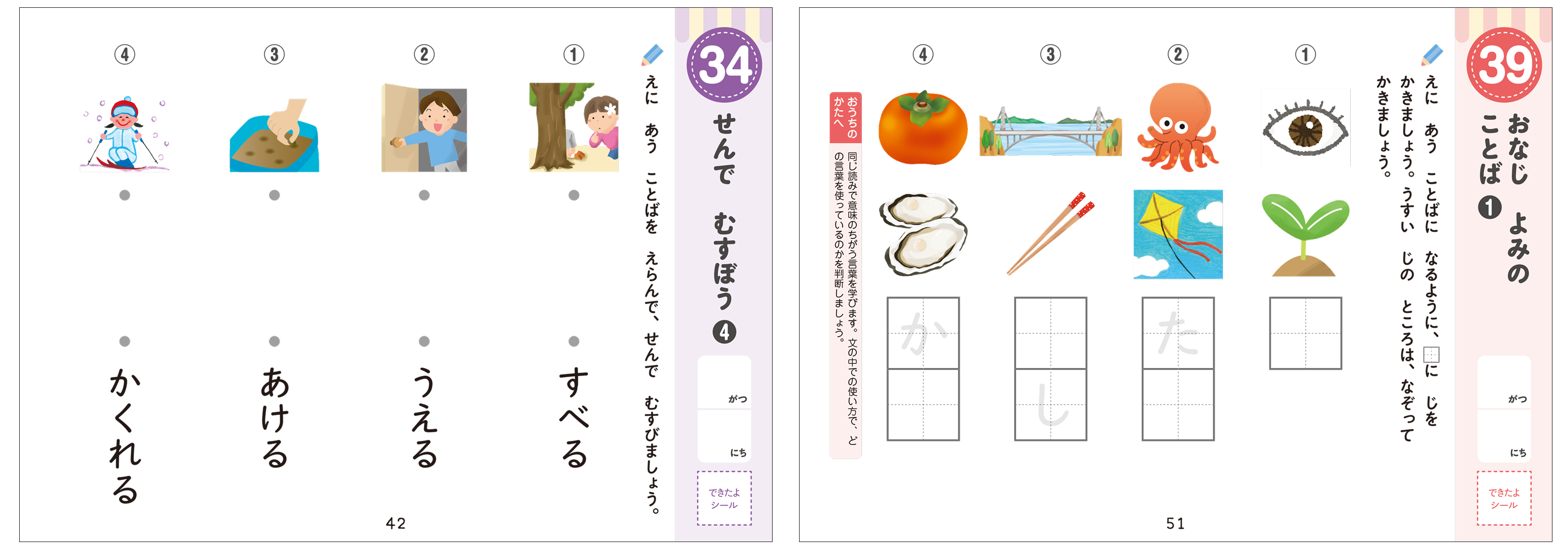 ・こくご:ひらがな、カタカナ、簡単な漢字など