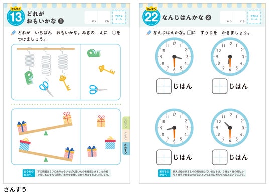 ・さんすう:20までの数、とけい、簡単なたし算など