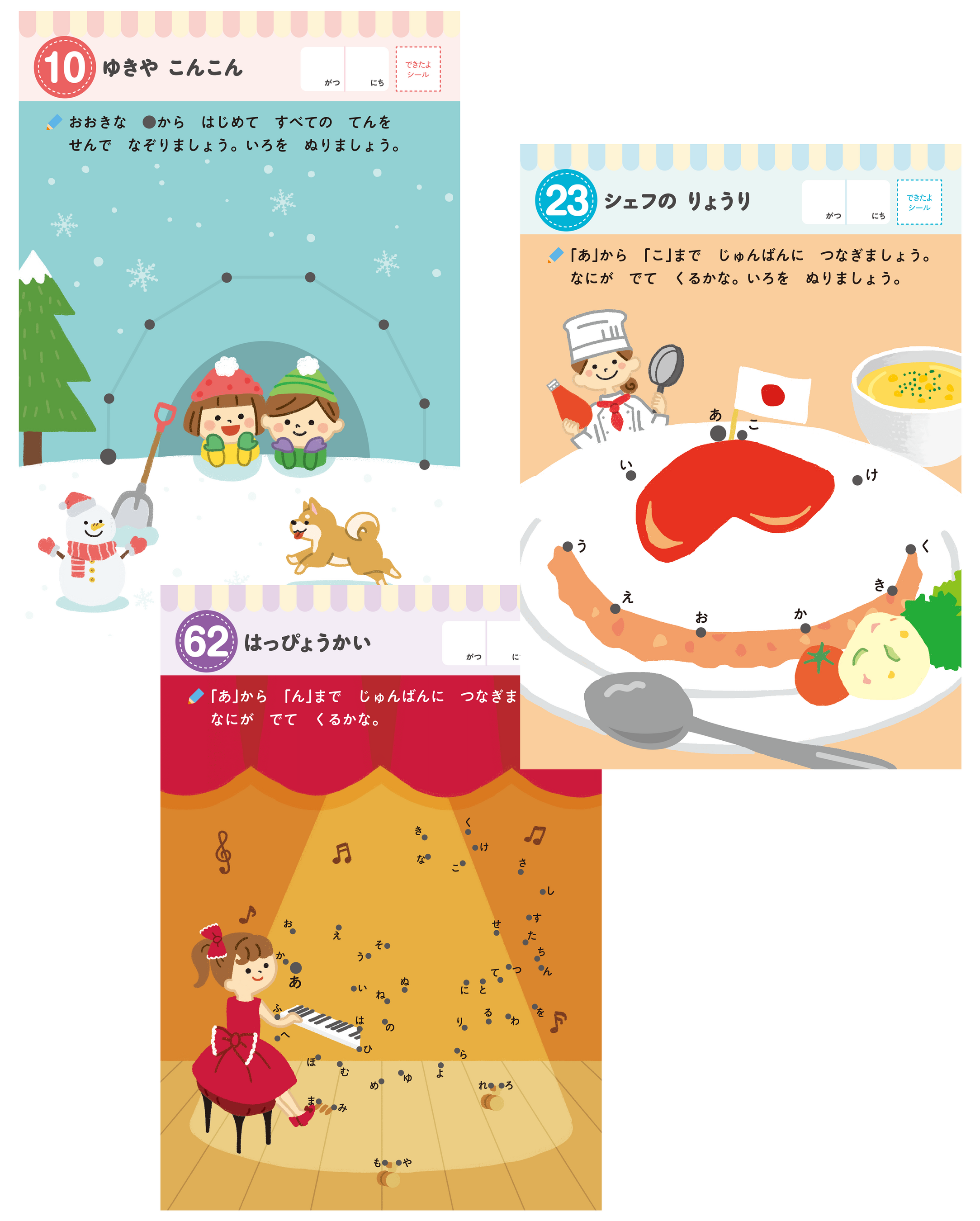 (カラフルでかわいいこだわりのイラスト。お子様が飽きずに取り組めるのもポイントです。)