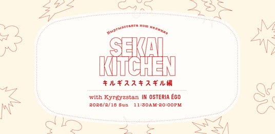 一般社団法人demo!expo(所在地:大阪府大阪市西区京町堀1-12-11 愛晃ビル4F/代表理事:花岡、以下demo!expo)は、2025年10月に開催し約5万人を動員したアフター万博イベント「世界横丁」内で生まれた世界の食文化プロジェクト「SEKAI KITCHEN」の一環として、万博キルギスパビリオンチームと連携し、大阪の料理人とともに食と文化の交流イベントを2026年2月15日(日)に、靭公園に隣接するイタリア料理の名店「osteria ego(オステリアイーゴ)」で開催します。
